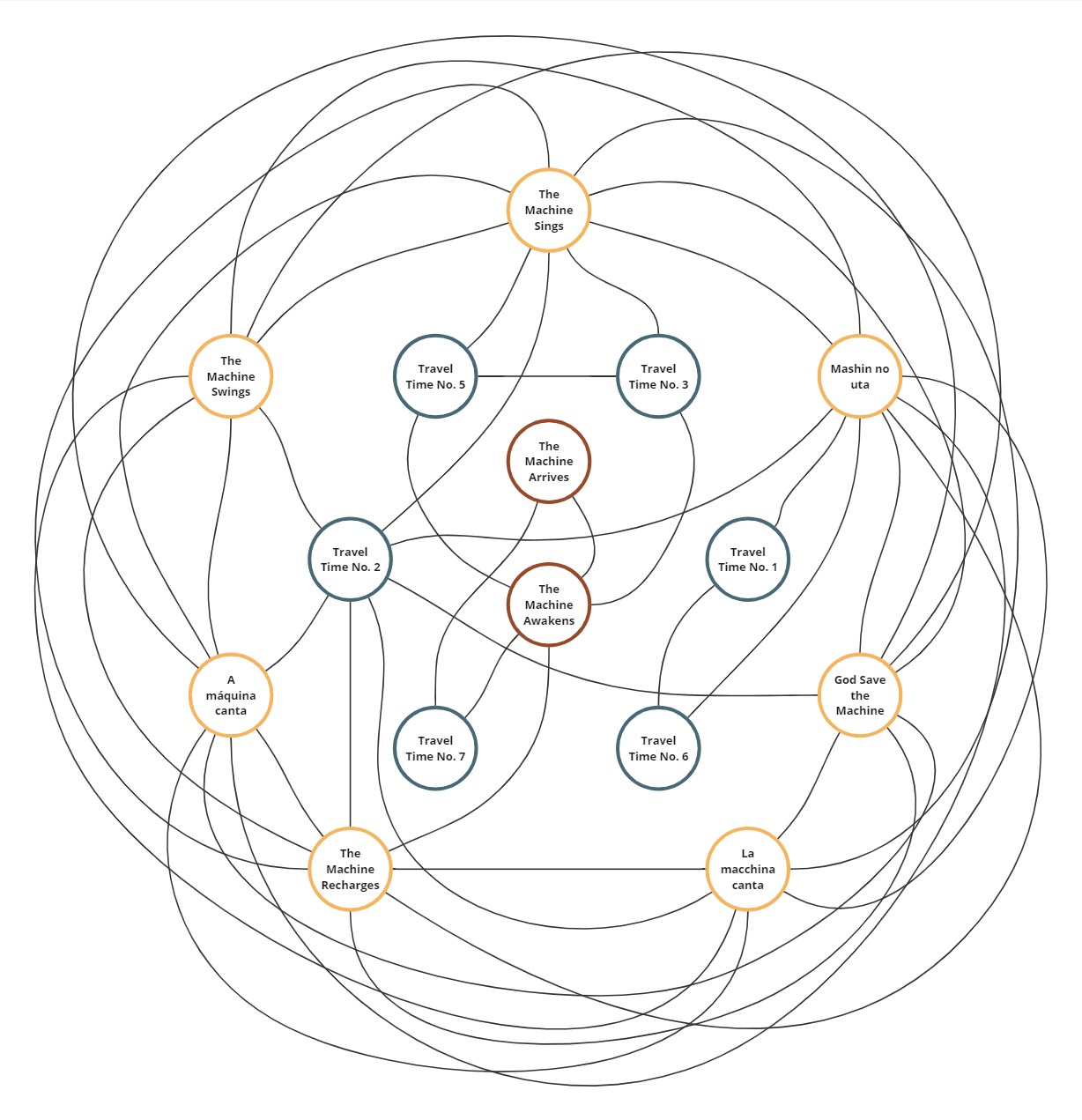 - Evidence: Titles in different languages such as “La macchina canta” and “Mashin no uta.”